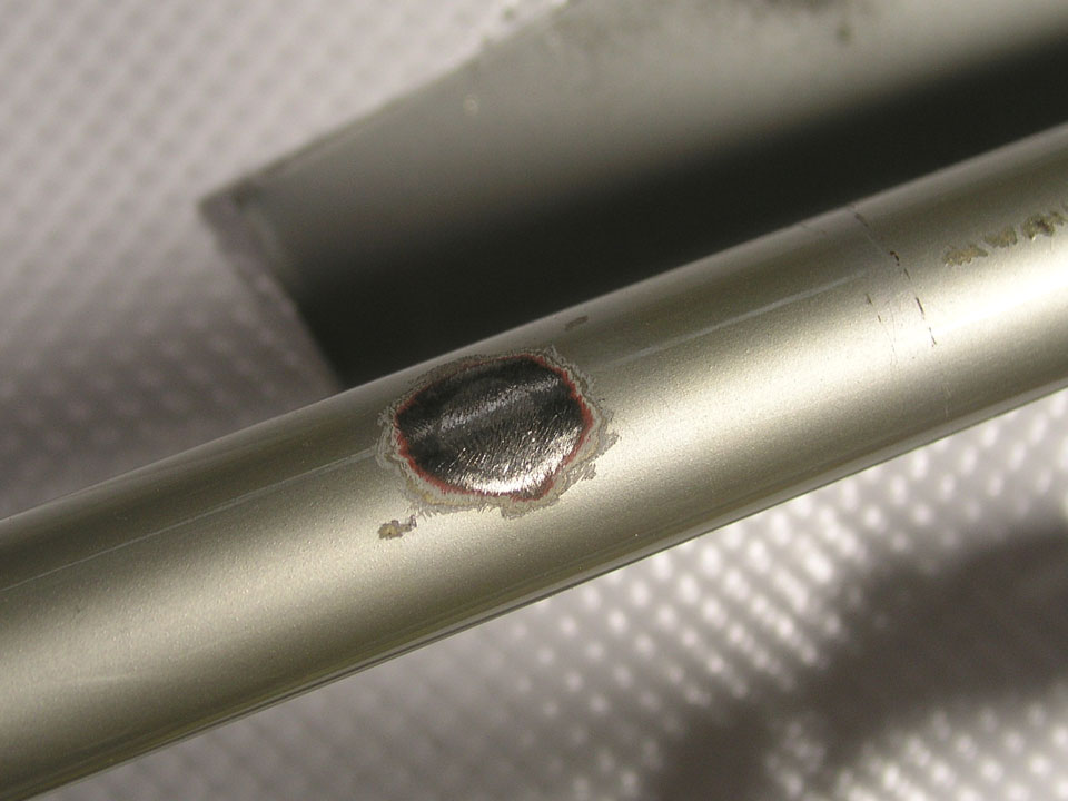 写真はシートステー下のアップですが剥離前では見逃してしまう箇所も、塗装作業前に、すべてきれいに仕上げておきます。