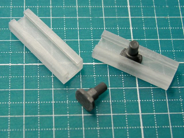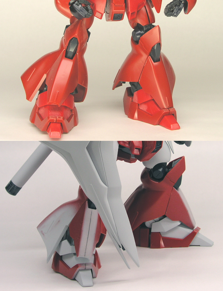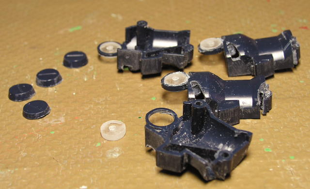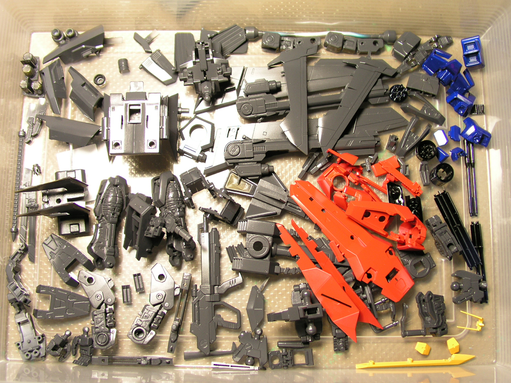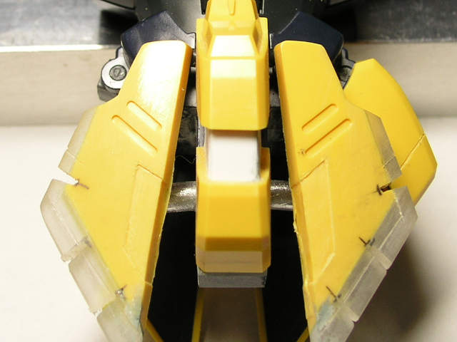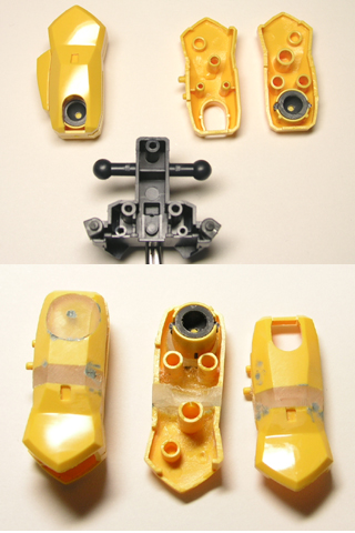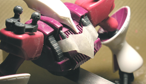 つま先部分を一体化するため、写真下のように内部の白いピンを切り離して、下側のバーツに固定しておきます。