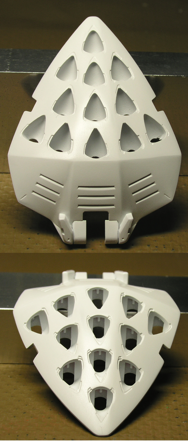 FRPで作成したセンサー部分とスラスターのベース用パーツがバランスよくフィットするように調整しているところです。