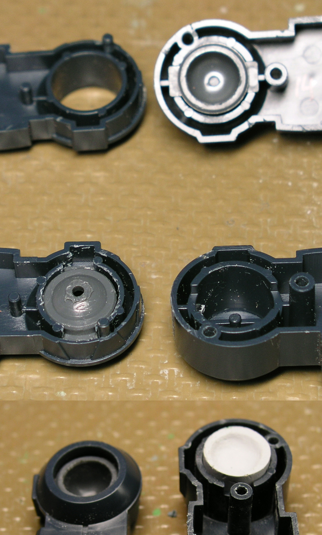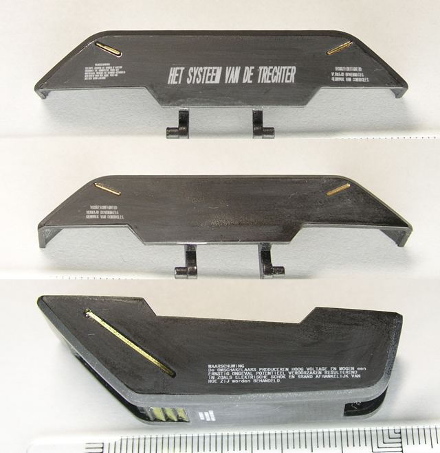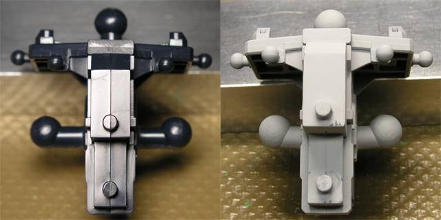 写真下のように両サイド部分に設定されていたメンテハッチ部分を開口し、予備パーツから切り出したホルダーを接着しました。