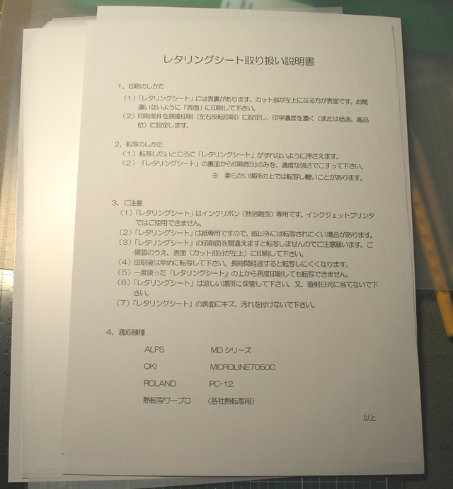 先日のインレタ方式で転写するシートをテストした結果の報告です。